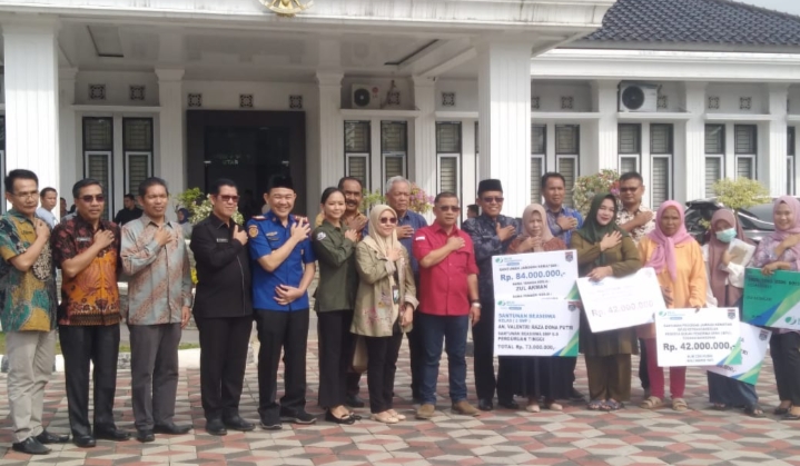 MURATARA I STARINTI.COM – Bupati Kabupaten Muratara, H Devi Suhartoni, secara simbolis menyerahkan santunan jaminan kematian dan beasiswa dari BPJS ketenagakerjaan, belum lama ini.