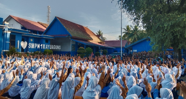 OKI I STARINTI.COM – Kepala SMP Negeri 1 Kayuagung, Nurhayati, S.Pd membuka acara seminar ESQ yang diikuti seluruh siswa dan guru di sekolah tersebut, Selasa ( 25/7/23).