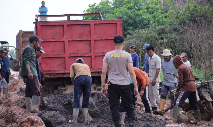 Kemudian perbaikan jalan rusak yang ada di desa tersebut. Polisi dan TNI dibantu masyarakat secara bergotong royong memperbaiki kerusakan jalan.