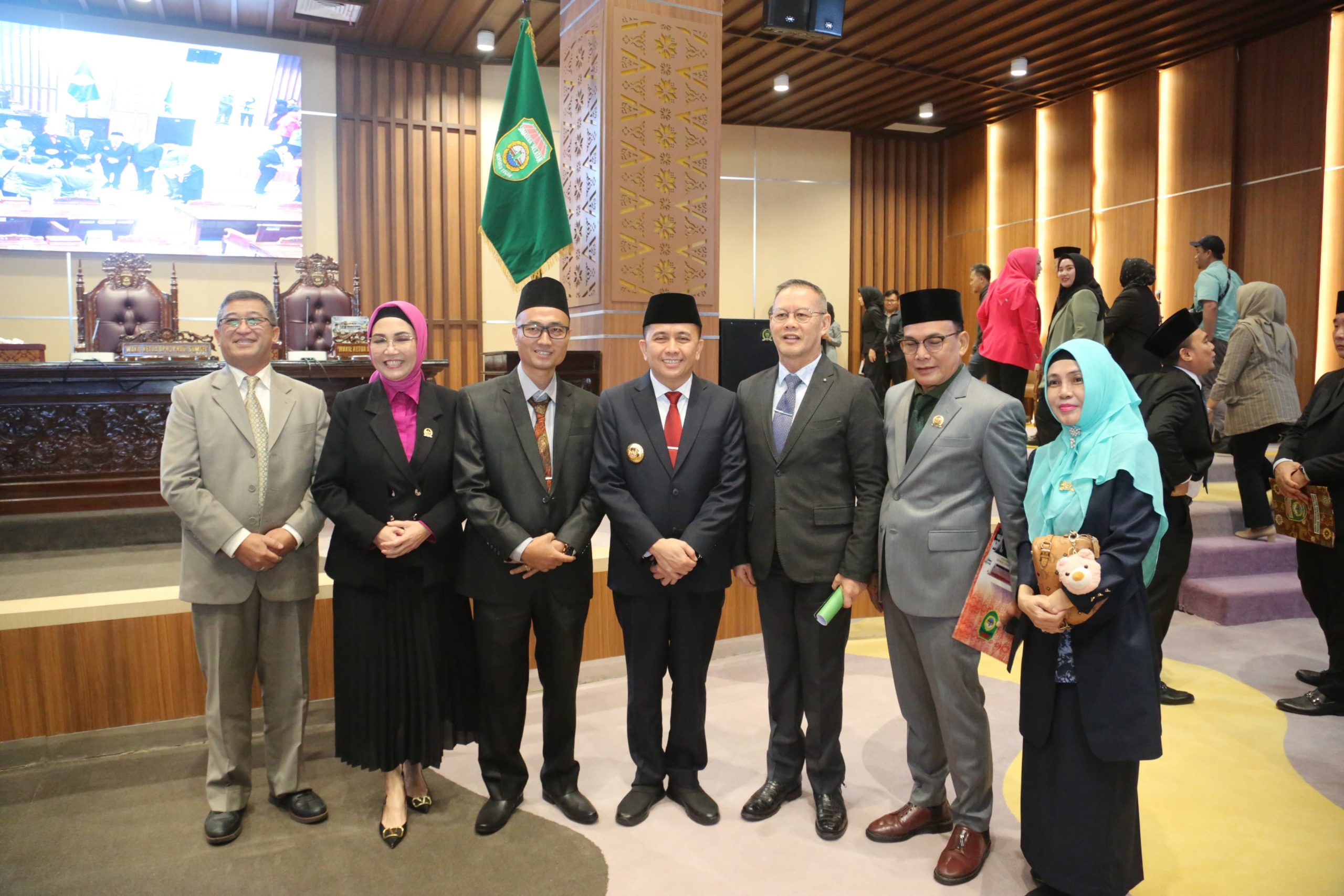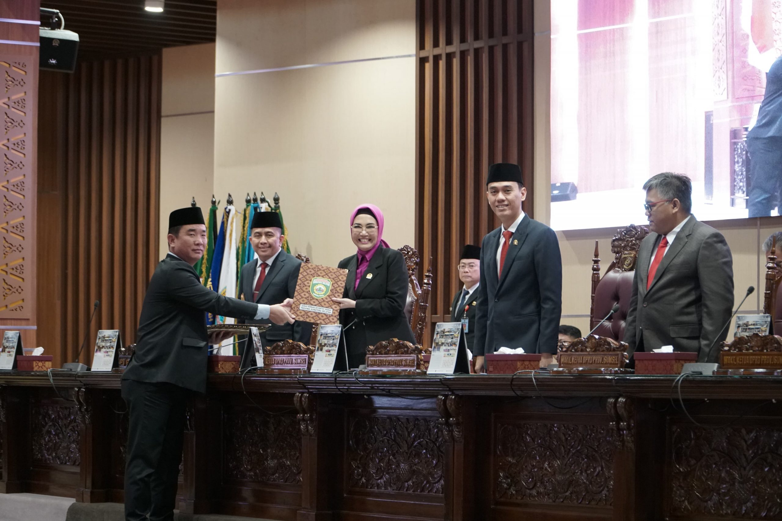 Rapat Paripurna LXXXI (81) tersebit dipimpin langsung Ketua DPRD Provinsi Sumsel, Hj R.A. Anita Noeringhati, SH, MH, didampingi oleh Wakil Ketua DPRD l H. Muchendi Mahzareki, SE, dihadiri oleh Pj. Gubernur Sumsel, Dr. Drs. A. Fatoni, M.Si dan Sekretaris Daerah; Ir. S.A. Supriono, Para Perwakilan OPD serta tamu undangan. (ADV)