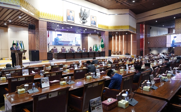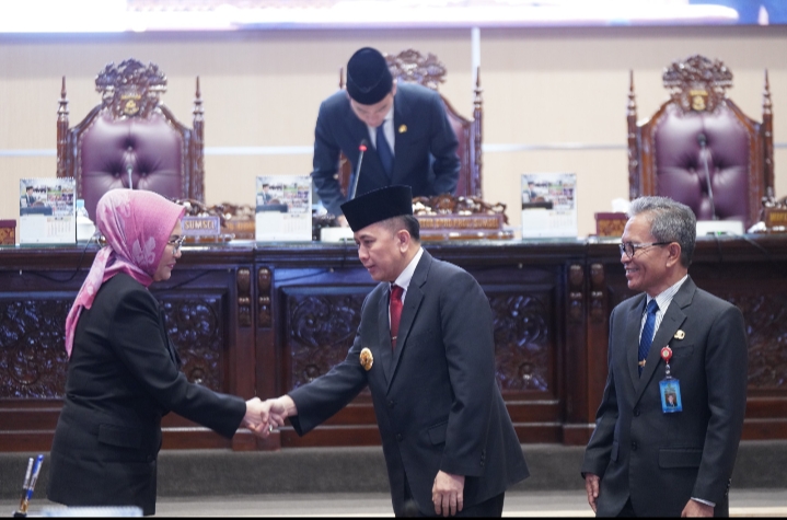 Rapat Paripurna LXXXIII (83) DPRD Provinsi Sumsel lanjutan dipimpin oleh Ketua DPRD Provinsi Sumsel, Hj. RA. Anita Noering Hati, SH, MH didampingi Wakil Ketua DPRD Prov. Sumsel; H. Muchendi M, SE, dihadiri Pj. Gubernur Sumsel; Dr. Drs. A. Fatoni, M.Si dan Sekretaris Daerah, Ir. S.A. Supriono, Para Perwakilan OPD serta tamu undangan lain.