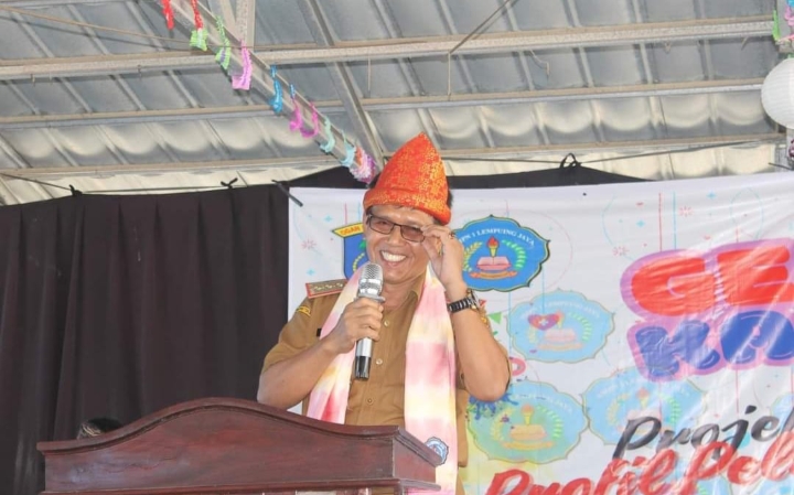 OKI I STARINTI. COM – Plh Kepala Dinas Pendidikan OKI, Syafaruddin, S.P, M.Si mengapresiasi kegiatan pentas seni dan gelar karya projek penguatan pelajar Pancasila yang dilaksanakan oleh Sekolah Penggerak SMPN 1 Lempuing Jaya, Kabupaten OKI.