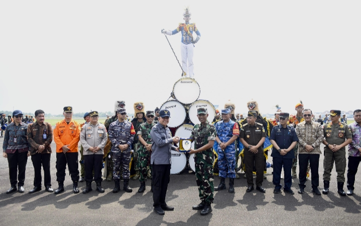 PALEMBANG I STARINTI.COM – Suara genderang drumband mengudara di langit Lapangan Udara Sri Mulyono Herlambang Pelambang, Jumat 31 Mei 2024, ratusan pasangan mata terpukau bercampur decak kagum menyaksikan taruna-taruni Akademi Angkatan Udara (AAU) yang beraksi dalam pertunjukan drumband latihan Cakra Wahana Paksa tingkat III AAU.