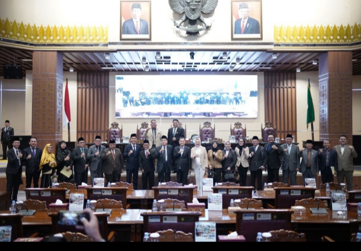 PALEMBANG I STARINTI.COM -Pimpinan dan anggota DPRD Provinsi Sumatera Selatan mendengarkan jawaban Gubernur atas pandangan umum fraksi-fraksi pada Rapat Paripurna LXXXIV (84) dengan agenda tanggapan dan atau jawaban Gubernur terhadap pandangan umum fraksi-fraksi terhadap Rancangan Peraturan Daerah (Raperda) Pertanggungjawaban Pelaksanaan Anggaran Pendapatan dan Belanja Daerah (APBD) Provinsi Sumatera Selatan Tahun Anggaran (TA) 2023 dipimpin oleh H. Muchendi Mahzareki, SE, M.Si dihadiri oleh Pj. Gubernur Sumsel, yang diwakili oleh Sekretaris Daerah, Ir. S.A. Supriono, Para Perwakilan OPD serta tamu undangan lain di Ruang Rapat Paripurna DPRD Sumsel Kamis, (6/6/24).