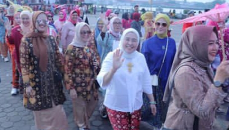 Dalam parade Kebaya Nusantara, DWP Kota Palembang tampak kompak dan tampil anggun. Mereka dengan bangga mengenakan kebaya sebagai indentitas bangsa Indonesia. (RIL)