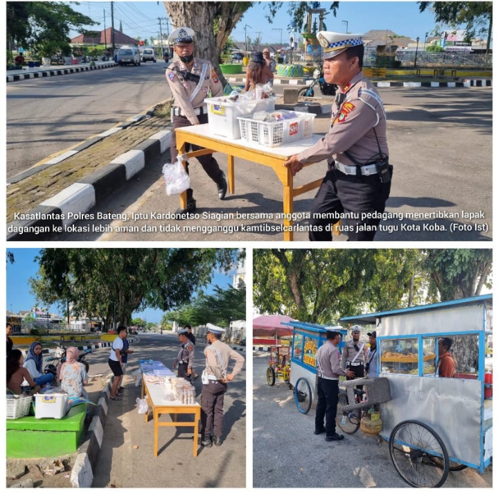 Kasatlantas Polres Bateng dan Sat Pol PP Tertibkan Pedagang di Ruas Jalan Bundaran Kota Koba