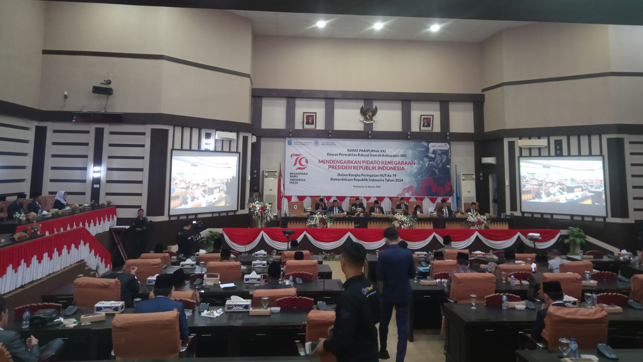 Ketua DPRD Kabupaten OKI, Abdiyanto Fikri, menyampaikan, Rapat Paripurna ini merupakan agenda Nasional dimana setiap tanggal 16 Agustus diselenggarakan Pidato Presiden Republik Indonesia dalam rangka memperingati Hari Ulang Tahun Republik Indonesia.
