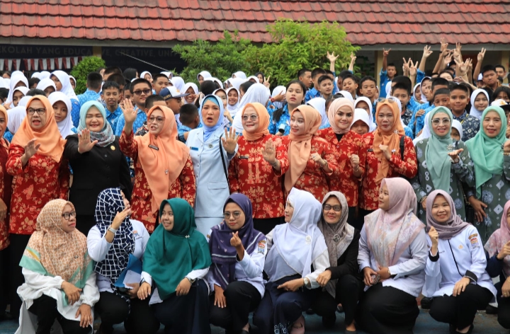 PALEMBANG I STARINTI.COM – Ketua Dharma Wanita Persatuan (DWP) Kota Palembang, Ida Riyani Aprizal didampingi Ketua DWP Organisasi Perangkat Daerah (OPD) Kota Palembang melakukan kunjungan ke sekolah-sekolah untuk mensosialisasikan gerakan anti Bullying dan anti narkoba kepada pelajar.