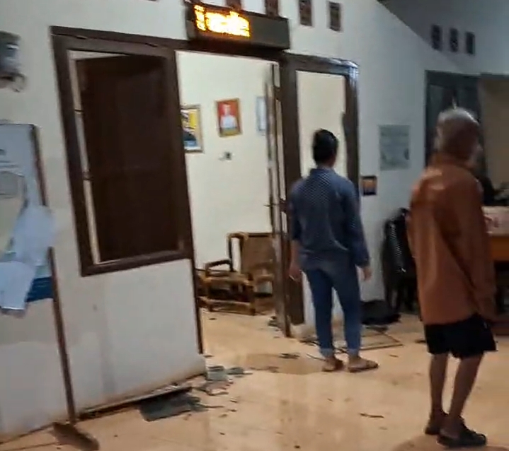 Dari video yang beredar masyarakat setempat mendatangi Polsek melihat kondisi fasilitas yang dirusak, kursi patah, kaca pecah, meja rusak dan lain sebagainya. (DONI)