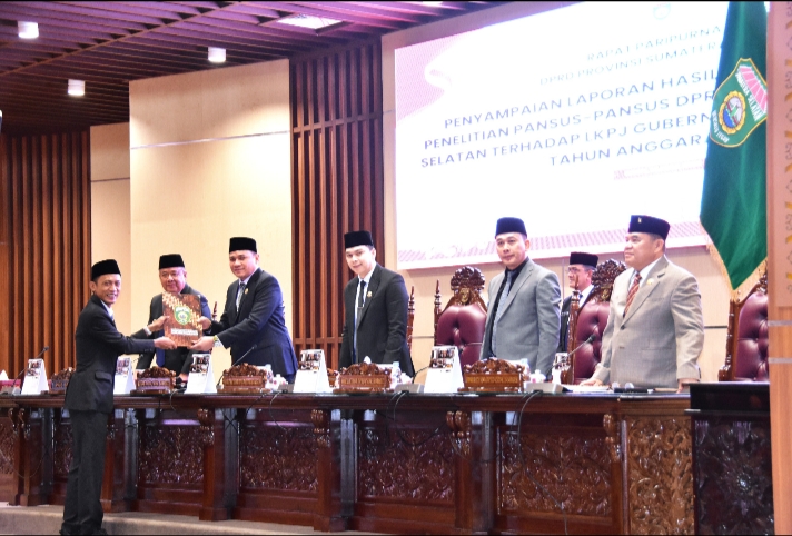 _“Berdasarkan ketentuan pasal 222 Ayat (7) Huruf b Peraturan DPRD Provinsi Sumatera Selatan Nomor 19 Tahun 2025 tentang Perubahan Kedua Atas Peraturan DPRD Provinsi Sumatera Selatan Nomor 22 Tahun 2020 Tentang Tata Tertib DPRD Provinsi Sumatera Selatan, hasil pembahasan dan penelitian Pansus-Pansus tersebut harus dilaporkan dalam Rapat Paripurna”. jelas Pimpinan Rapat.