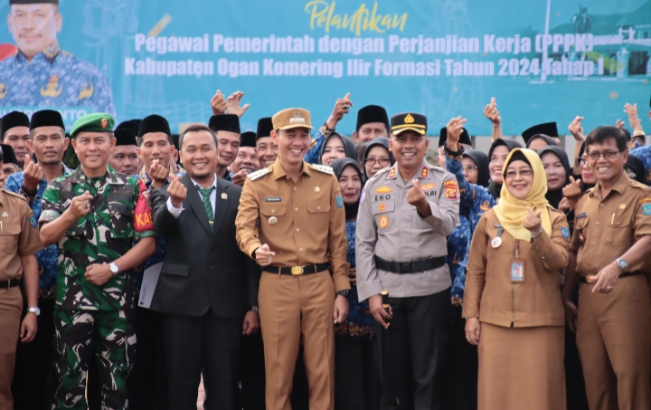 OKI I STARINTI.COM – Kapolres Ogan Komering Ilir (OKI), AKBP Eko Rubiyanto, menghadiri upacara pelantikan dan pengambilan sumpah Pegawai Pemerintah dengan Perjanjian Kerja (PPPK) di Lapangan Pemda OKI, Selasa (20/5/25)