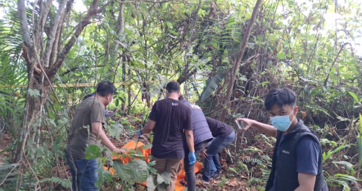 Rambut panjang, Kondisi tubuh berada di dalam karung, dan bagian wajah tertutup oleh baju hitam, Identitas belum diketahui.